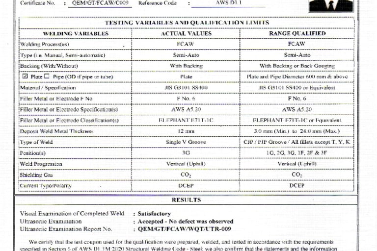AWS D 1.1 / D 1.1 M :2015 system (WPS & PQR )