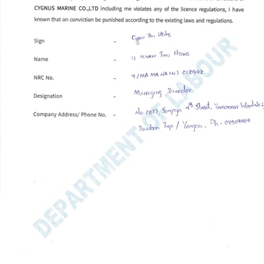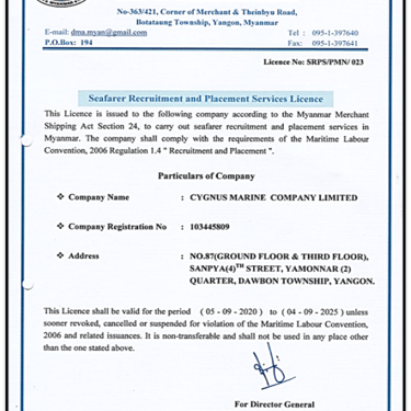 Cygnus Marine is a leading overseas employment and seafarer recruitment agency in Myanmar. We specialize in recruiting skilled workers from Myanmar and placing them in various industries in foreign countries.